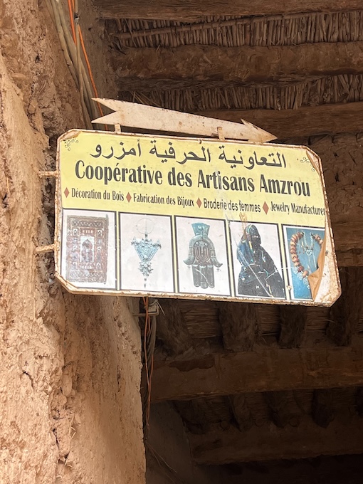 A visit to the village of Amezrou, once home to 400 Jewish households, was fascinating. Before we found local man Abdul to guide us through the historic mellah and show us the old synagogue, we felt like the pied piper as the number of kids following us around grew with every corner we turned! The artisans cooperative in Amezrou was a proper Aladdin’s cave and a treasure trove of some of the best hand crafted curios we have ever seen. The range of handcrafts with intricate Amazigh, Muslim, Jewish & African designs was staggering. There was room after room packed to the rafters with woodwork, metalwork, jewellery, leatherwork, ceramics and carpets. If we were going to buy anything from Morocco then this was the place we would’ve shopped. Its probably a good thing we have no space in the van for such luxuries!