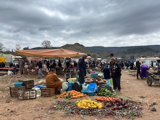 We were lucky enough to hit the Amazigh mountain town of Azrou in time for its traditional weekly (Tuesdays) outdoor market. We were too late for the early morning livestock market, but since we weren’t planning on buying a sheep or a goat it wasn’t a problem! There were still enough piles of potatoes and pungent onions laid out amongst peppers, peas and aubergines, fresh fruit, nuts and dates, for us to pick up and pay for our weekly shop for practically nothing!