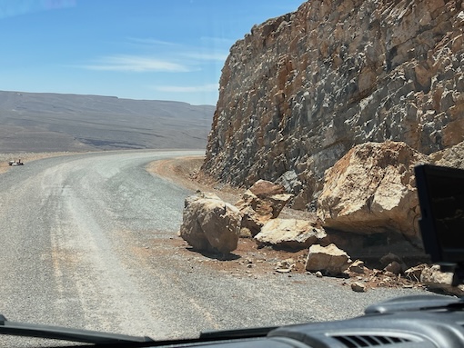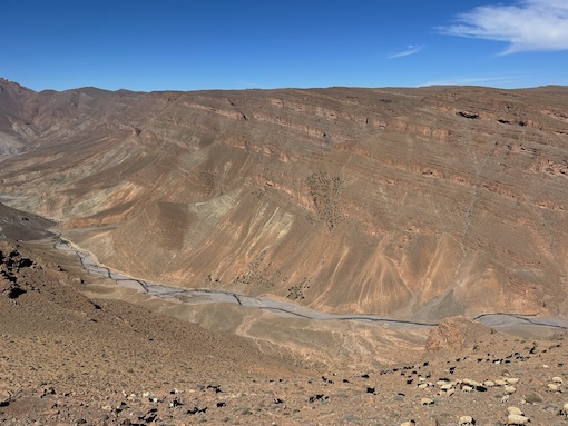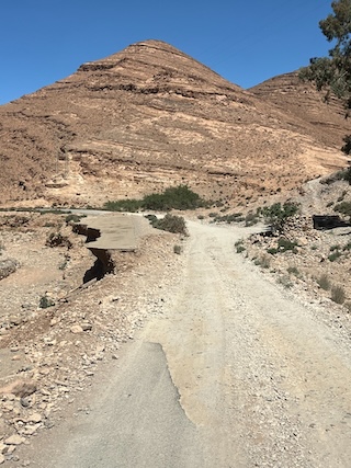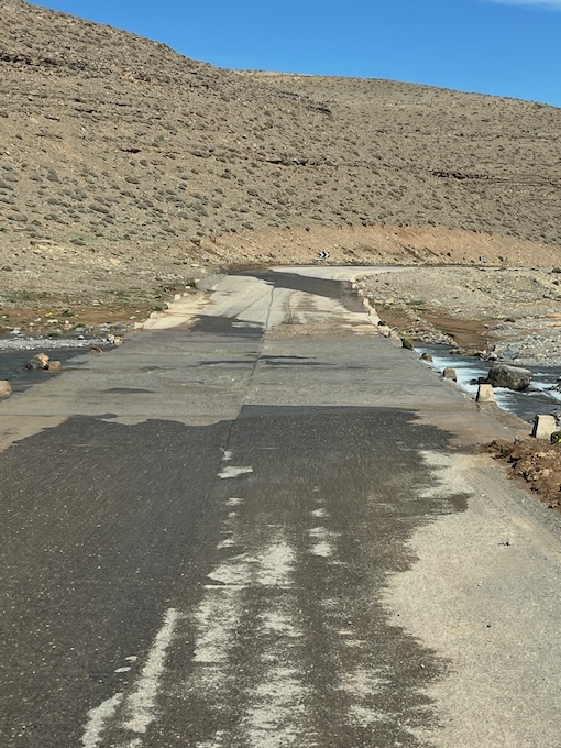 From Todra Gorge we took the R703, a perfectly paved road, north to the Amazigh village of Tamattouchte where we had a lovely overnight stop with a local family. It was the R704 road from Agoudal where we wanted to turn south towards Dades Gorge, that was in doubt. The recent heavy rain had meant the road had been closed for a few days, but our host said we could now pass through.