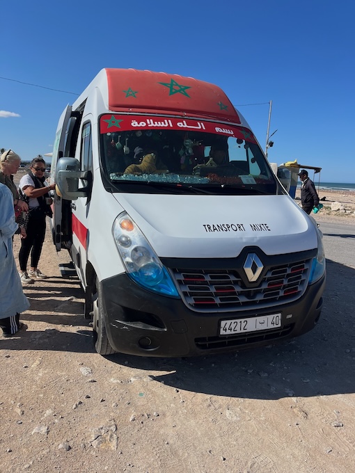 We pitched up at Camping Soleil at Sidi Kaouki for a few nights. The small village, and wild, windy, and empty beach (apart from the occasional camel) was only a five minute walk away. There is a bus service to Essaouira. The small mini bus takes about 25 minutes to the medina and cost us 10 dirham each. The larger bus on the way back was slower (about 40 minutes) and two dirham cheaper!