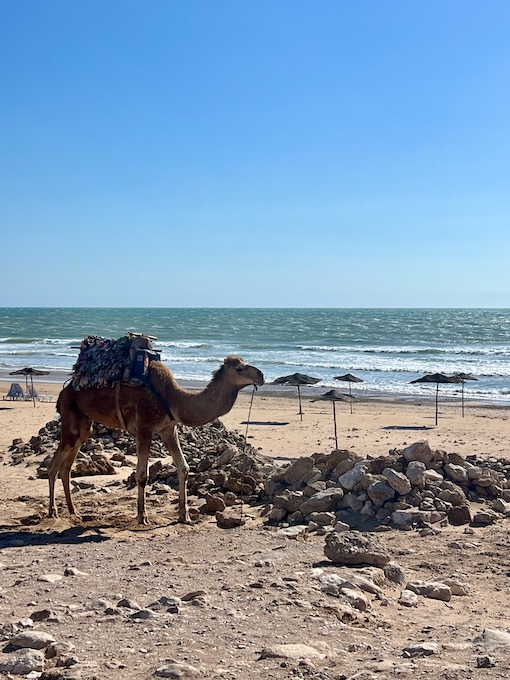 We went from goats in trees to camels on beaches (again)! This time at Sidi Kaouki, 25kms south of Essaouira on the Northern Atlantic Coast. (We had heard that Essaouira was not camper van friendly, which is probably true in the high season, but in early May there were definitely (paid) places to park for both day time and overnight).