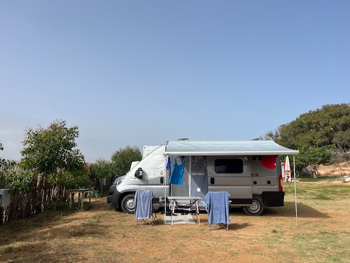 We chose the comparatively low-key town of Martil on the Mediterranean Coast of Morocco as our first stop. It was an easy drive on the well maintained toll road (MAD16/GBP1.35), and just over an hour from Tanger Med. It had a few choices of places to park up, had all the shops and services we needed, a nice seaside location, and easy running routes! All in all a perfect base for the first couple of nights to familiarise ourselves with a new country, a new culture, and a new language. It is worth noting that in this northern area of Morocco, Spanish is more widely spoken than French.