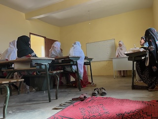 On our quest for information we ended up being invited in to a classroom of local Amazigh women who were learning to read and write Arabic. We joined in and learned how to write our names too! Although the Jewish Mellah in Ifrane Atlas Saghir has long since been abandoned, the Jewish history of the area has been preserved. The lovely young teacher who spoke English helped us track down the key holder of the restored synagogue so we could organise a visit. This local man also guided us to the Jewish cemetery. At first glance it looked like a field full of rocks to us, but on his guidance we could see clearly the Hebrew inscriptions on the headstones, some of which were more than 2,000 years old.