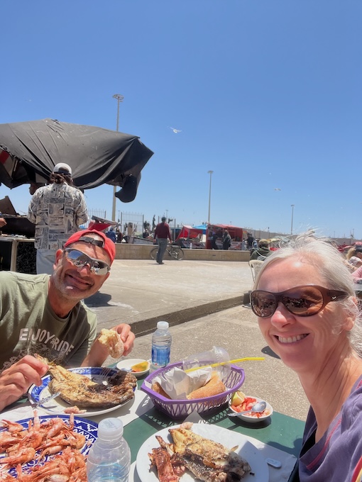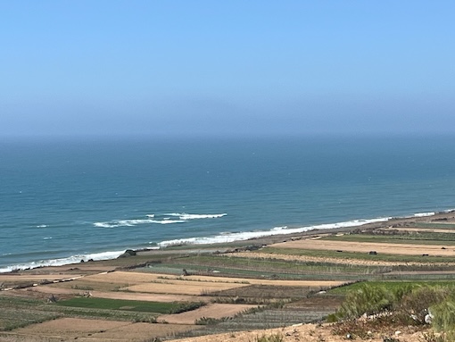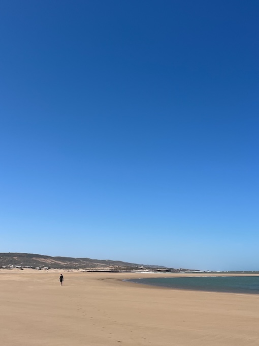 From Marrakech it was back to the North Atlantic coast, and on the recommendation of our friends we headed cross country to the Oualidia area. This is where the farming communities and fishing villages live side by side. Everything seemed to be growing here in the neatly planted fields which roll gently downhill to meet the sea. Beautiful walking/running trails with views in all directions, and the beaches/lagoons were the perfect spots for swimming. The fish and seafood in the Oualidia area was up there with the best we’ve ever had. Fantastic free places to park up, plus great value campsites like Camping Plage Mrizika behind the sand dunes for 50MAD per night. If we hadn’t had to make moves back towards the UK for the MOT we would’ve definitely stayed in this area longer.