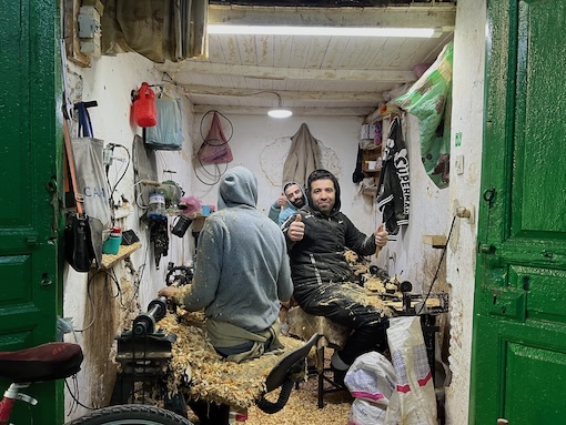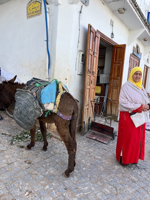 We lost count of the number of donkeys we saw as we drove south from Akchour through the rolling green hills to Ouazzane. Donkeys and mules we would soon come to realise are an integral part of daily life in Morocco, not a day goes by when you don’t see a donkey! As blue as Chefchaouen was, Ouazzane was as green. This little gem of a mountain town with its more than 40 shades of green was well worth a visit. Their ancient medina was full of friendly woodworkers and cloth makers, many of whom dress in their djellabas, the traditional hooded cloaks, and all were keen to show us their skills and wares. No hard sell, they seemed genuinely pleased to see us. And the added bonus was there wasn’t a single Instagrammer in sight!