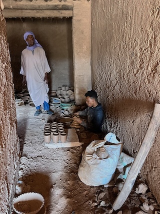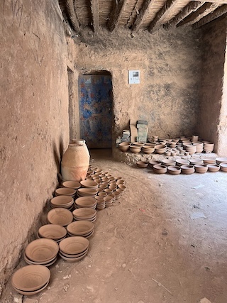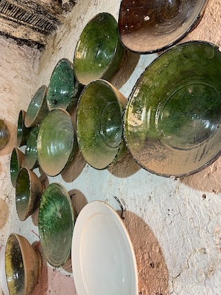 The green tiles that top the roof of almost every mosque in Morocco are made in the town of Tamegroute. We walked around the maze of streets and alleyways watching as families and generations of pottery makers moulded the clay on their potter’s wheels. The streets are lined with all shapes and sizes of pots and tiles all drying out before adding the distinctive green glaze for baking in the huge hot ovens. The families are well used to having the eyes of tourists on them and many will demand money for the privilege. Of course you can also support the community by buying the finished pottery from the local co-operative shop.