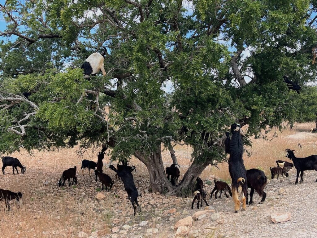 Driving north from Imsouane on the N1 (south of Tamanar) we were lucky enough to spot several herds of tree-climbing goats grazing on the argan trees endemic to this area. It wasn’t long before we were regularly being waved down by locals selling their argan oil products on roadside stalls!