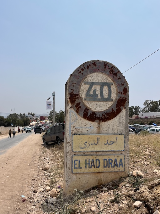 From here we headed inland through the countryside on our way to Ounara do a bit of Moroccan wine tasting at Les Domaines du Val d’Argan, a vineyard created by Charles Melia, the owner of Font du Loup in Châteauneuf-du-Pape. But before we could get there we came across the town of Had Dra and the road we wanted to take was closed. Nothing else for it, but to park up and see what was going on.