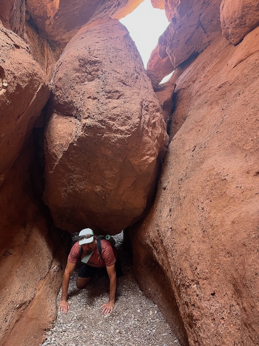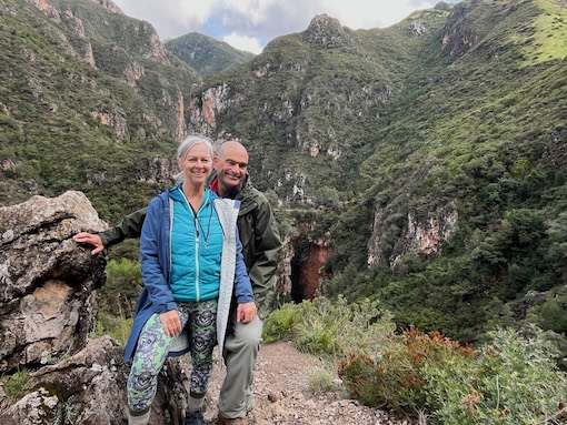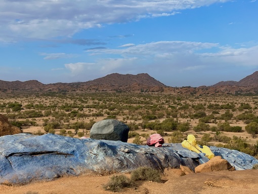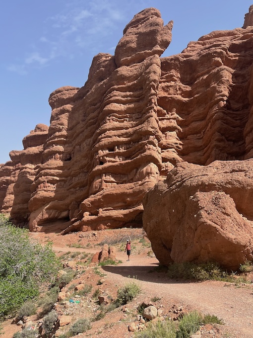 The hiking in this area was superb. Unique and impressive sandstone rock formations rising from the (very flooded while we were there) river bed. The Monkey’s Fingers are like digits of boulders which can be seen from the road. But for the best vistas, and tons more bizarre rocks, it is well worth hiking further up, or around, the gorge. We used the Komoot app to plan our hikes and even with that getting lost is still a real possibility! There was a lot of scrambling and climbing over, and crawling under boulders as we descended down through the canyon walls. An older local gentleman appeared out of nowhere when we were unsure of the way to go. He guided us down a real tricky bit, only to turn up later in the day as we faced crossing the very fast flowing river. He kindly took us one at a time, hand by hand, and led us across the river to avoid getting our feet wet!