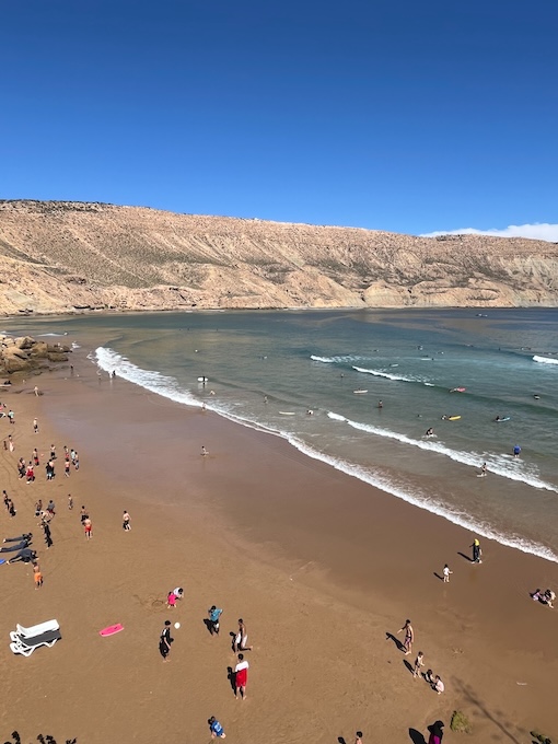 After Agadir we took the short jaunt up the coast to Tamraght, where the sea was full of surf schools, and the beach chockablock with camels!!! We walked the 5km paved trail all the way to Taghazout,and back,passing by a string of luxury hotels en route. And we don’t think we’ve ever seen as many surfboards (in and out of the water) anywhere else in the world! Surf shops and surf schools around every corner!