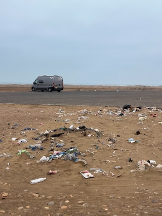 Great sea views and lots of local day trippers. The down side is the sheer volume of rubbish left behind. Many Moroccans are completely unaware of the negative impact of throwing rubbish behind them. And granted often there are no bins, but in this case there were. Our litter picker was in constant use in this area! The upside of course is that these ever friendly people, mostly groups of men picnicking together, always offered us to join them for tea and fruit.
